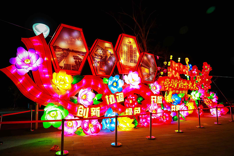 鄭州園博園新春燈會以“中國夢·園博情”為主題,融合傳統節慶韻味和園博彩燈文化,設置了大型燈組16組、中型燈組15組、小型燈組8組,串聯、裝點燈組12組,燈組種類繁多,文化意蘊豐厚,觀賞效果震撼,充分展現了悠久燦爛的華夏文明和絢爛多姿的彩燈藝術。
