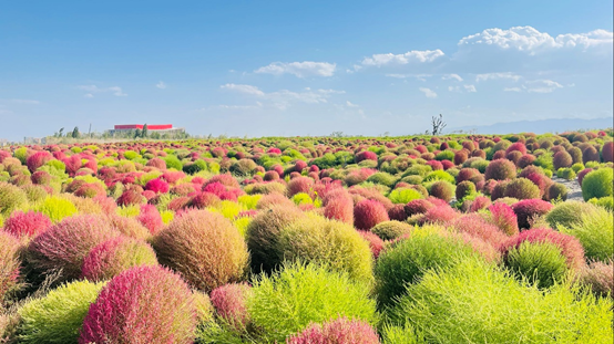 滿眼望去的這群可愛小胖墩,是“紅”遍全球的紅葉地膚,可謂花海界頂流般的存在,目前,地膚悄悄地變紅了,開始進入最佳觀賞期,搖身一變成為秋日限定“網(wǎng)紅”。